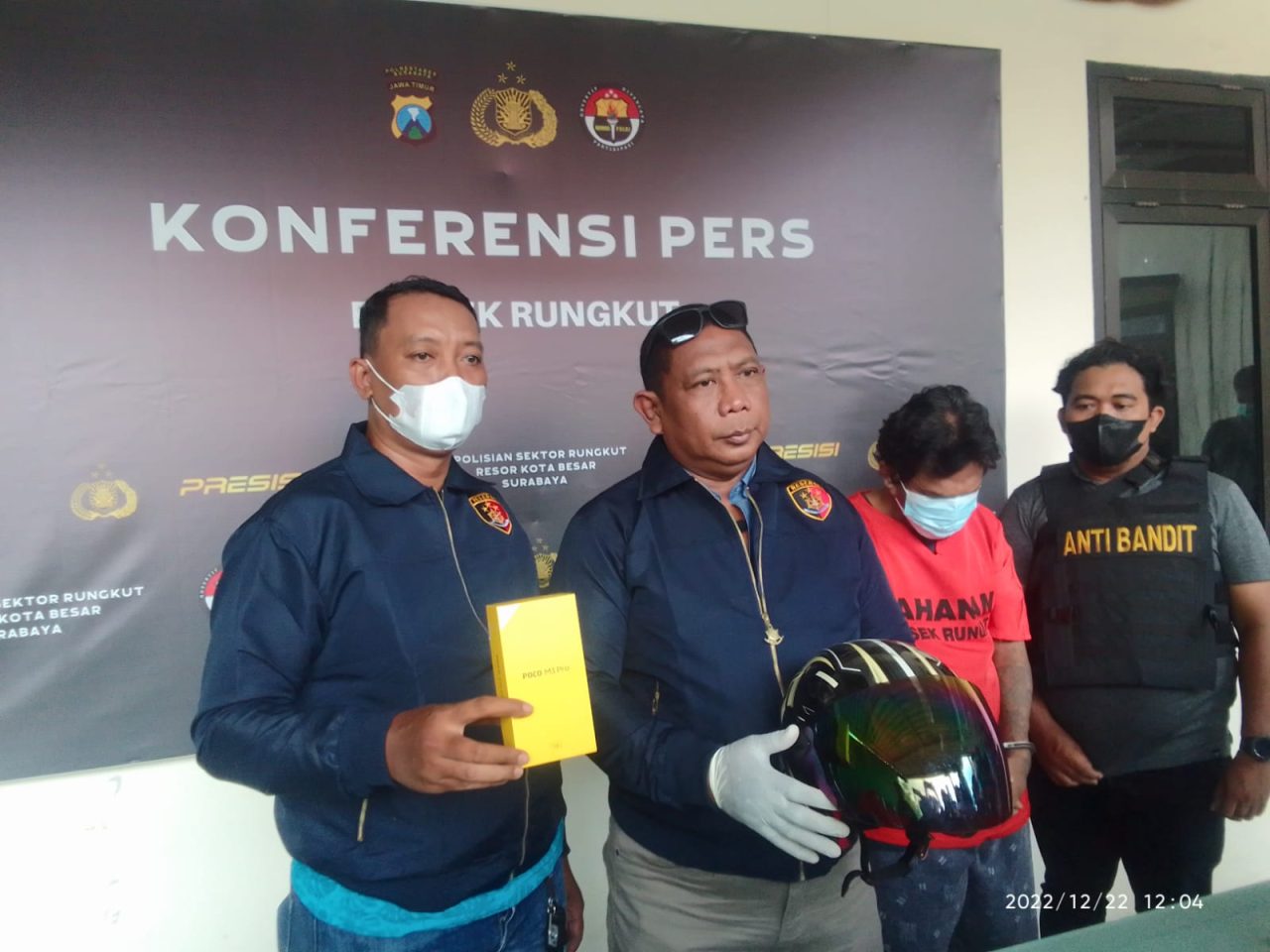 Kepolisian Sektor Rungkut jajaran Polrestabes Surabaya pada hari Kamis (22/12/2022) menggelar konferensi pers hasil ungkap kasus pencurian Sepeda Motor (Curanmor) di tempat parkir Klinik Bosowa Jalan Rungkut Asri Tengah Surabaya.