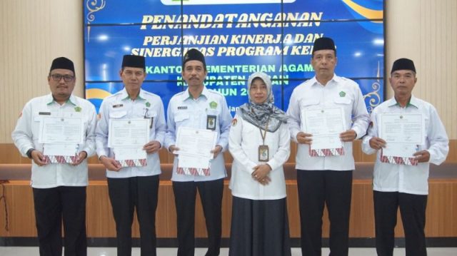 Kantor Kementerian Agama (Kemenag) Kabupaten Tuban menggelar acara Penandatanganan Perjanjian Kinerja (Perkin) dan Sinergitas Program Tahun 2025 yang berlangsung di Aula PLHUT, Senin (20/1/2025). Kegiatan ini dipimpin langsung oleh Kepala Kantor Kemenag Tuban, Umi Kulsum, serta dihadiri oleh seluruh pejabat struktural dan fungsional di lingkungan Kemenag Tuban.