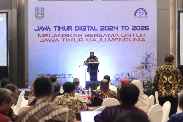 Dinas Komunikasi dan Informatika se-Jawa Timur mengikuti sesi diskusi diskusi grup dalam gelaran Jawa Timur Digital 2024 to 2026 “Melangkah Bersama untuk Jawa Timur Maju Mendunia” di hari kedua, Rabu (22/1/2025).