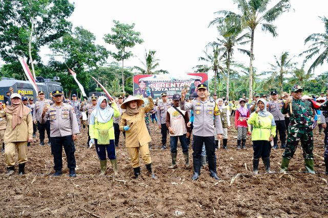 Gerakan penanaman jagung serentak seluas 1 juta hektar merupakan kerjasama antara Polri dan Kementerian Pertanian. Program ini mendukung target swasembada pangan nasional pada tahun 2025. Bupati Ipuk didampingi Kapolresta Banyuwangi Kombespol Rama Samtama Putra dan Dandim 0825 Letkol Arh Joko Sukoyo, di kawasan PTPN I Regional V Dusun Kendenglembu Desa Karangharjo Kecamatan Glenmore, Kabupaten Banyuwangi.