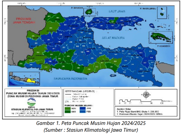 Selain itu diprakirakan terbentuknya daerah siklonik di wilayah Samudera Hindia sebelah selatan Jawa Timur juga mendukung terbentuknya daerah konvergensi dan peningkatan pertumbuhan awan-awan hujan di wilayah Jawa Timur.
