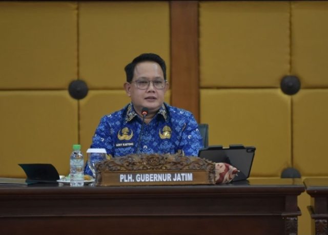 Plh. Gubernur Jawa Timur Adhy Karyono memimpin agenda Rapat Koordinasi (Rakor) Efisiensi Pelaksanaan Anggaran Pendapatan dan Belanja Daerah (APBD) Tahun 2025 di Lt.8 Ruang Hayam Wuruk, Kantor Setdaprov Jatim, Surabaya, pada Senin (17/2/2025). Rakor tersebut merupakan tindak lanjut dari Instruksi Presiden (Inpres) Nomor 1 Tahun 2025 pada 22 Januari yang lalu.