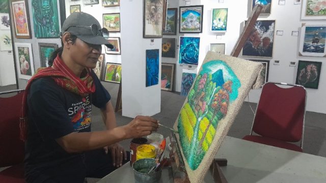 “Alirannya beragam, jadi ada yang realis, ekspresionis, ada dekoratif, abstrak, naturalis. Ya macam-macam lah, hampir semua aliran ada di sini. Pameran ini pun disiapkan sekitar satu bulan,” tutur Muit.