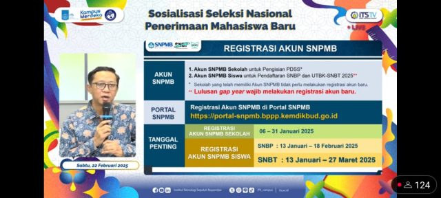Pertama adalah terkait timeline registrasi akun dan pendaftaran SNBT yang berlangsung mulai tanggal 11 – 27 Maret 2025. “Peserta diharapkan segera mendaftar nantinya untuk mengantisipasi berbagai kendala dalam proses pendaftarannya,” ujarnya berpesan.