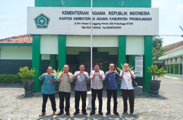 Dalam rangka mempercepat proses sertifikasi tanah wakaf di Kabupaten Probolinggo, Kepala Kantor Kementerian Agama Kabupaten Probolinggo, Samsur, didampingi oleh Kasubbag TU, Moh. Sa’dun, serta Penyelenggara Zakat dan Wakaf, Yazid Zain, menerima kunjungan dari Kepala Kantor Agraria dan Tata Ruang/Badan Pertanahan Nasional (ATR/BPN) Kabupaten Probolinggo, Wida Rihardiyan. Pertemuan yang berlangsung di Kantor Kemenag Kabupaten Probolinggo ini juga dihadiri oleh Kasi Penetapan Hak Tanah, Ruang, dan Pembinaan PPAT, Budi Prasetyo, serta Koordinator Kelompok Substansi Pemeliharaan Hak Tanah, Ruang, dan Pembinaan PPAT, Ismail.