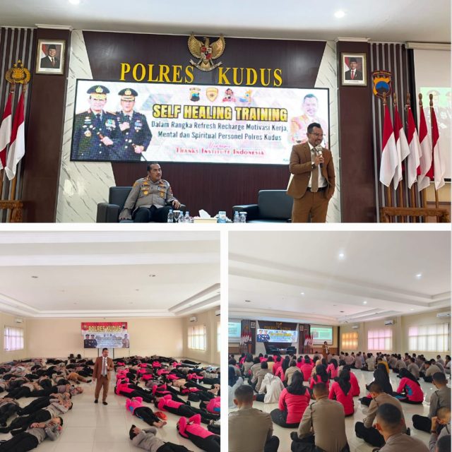 Self Healing Training perdana di Polres Kudus tersebut mendatangkan Pusat Training Motivasi Polri Thanks Institute Indonesia, yang digelar di aula Parama Satwika Mapolres Kudus dengan narasumber Dr. Ketut Abid Halimi S.Pd.I M.Pd., CHt, CPs, selaku Direktur Thanks Institute Indonesia, Selasa (25/02/2025).