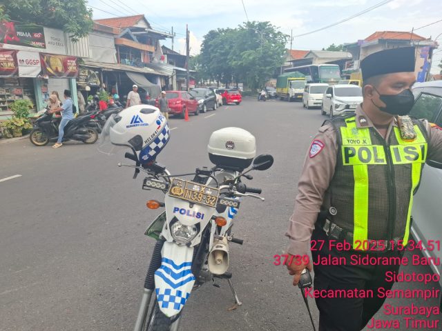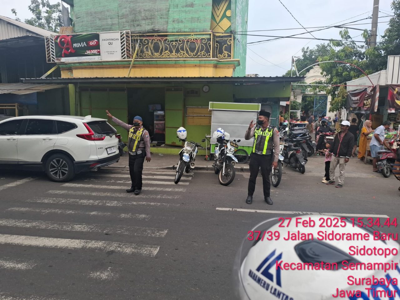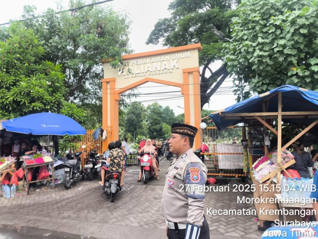 Petugas Satuan Lalulintas (Satlantas) Polres Pelabuhan Tanjung Perak gabungan dengan Polsek jajaran, pada hari Kamis 27 Februari 2025 sore menggelar PAM pengamanan jalur di beberapa titik lokasi makam yang ada diwilayah.