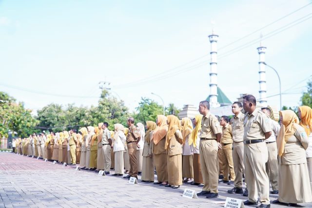 Bupati Lamongan, Yuhronur Efendi menekankan aparatur sipil negara (ASN) harus mampu ikut berperan untuk mewujudkan kesejahteran masyarakat. Hal tersebut disampaikan saat bertindak sebagai pemimpin apel di Halaman Pemkab Lamongan, Senin (3/3/2025).