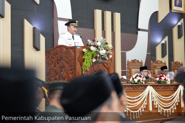 Setelah penandatanganan berita acara serah terima jabatan (Sertijab) Kepala Daerah Kabupaten Pasuruan dan penyerahan memori jabatan dari Penjabat (Pj) Bupati Pasuruan, Andriyanto maupun Pj Bupati Nurkholis kepada Bupati Rusdi Sutejo, untuk pertama kalinya, Bupati Pasuruan, Rusdi Sutejo menyampaikan pidato perdananya di hadapan seluruh anggota DPRD Kabupaten Pasuruan, Rabu (5/3/2025) sore.