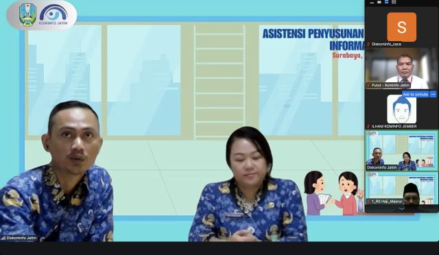Dalam rangka optimalisasi penerapan Keterbukaan Informasi Publik (KIP), Dinas Komunikasi dan Informatika (Diskominfo) Provinsi Jawa Timur menggelar kegiatan Asistensi Penyusunan Dokumen Informasi Publik. Acara diikuti 64 PPID Pelaksana dari Perangkat Daerah Provinsi Jawa Timur dan 38 Dinas Kominfo Kabupaten/Kota se-Jawa Timur secara online atau dalam jaringan, Senin (17/3/2025).