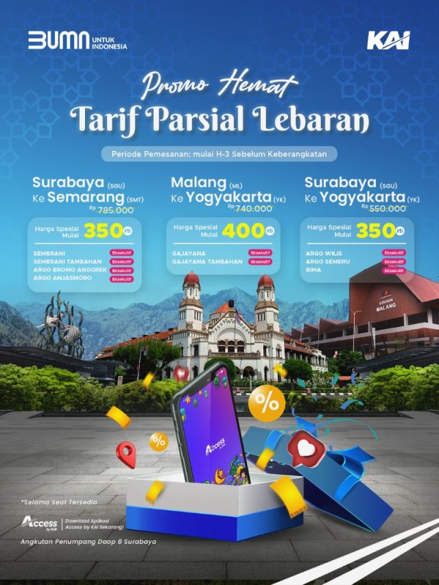Manager Humas KAI Daop 8 Surabaya, Luqman Arif, Kamis (3/4/2025) menjelaskan bahwa promo tarif parsial ini dapat dinikmati masyarakat dengan pembelian melalui aplikasi Access by KAI, dengan periode keberangkatan sampai masa angkutan lebaran 2025.