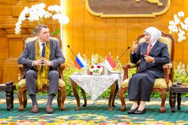 Diplomasi antarwilayah Indonesia-Rusia kembali menguat. Gubernur Jawa Timur, Khofifah Indar Parawansa, menerima kunjungan Delegasi Pemerintah Provinsi Tomsk, Rusia, dalam sebuah pertemuan hangat penuh semangat kerja sama di Gedung Negara Grahadi, Surabaya, Rabu (16/4/2025) malam.