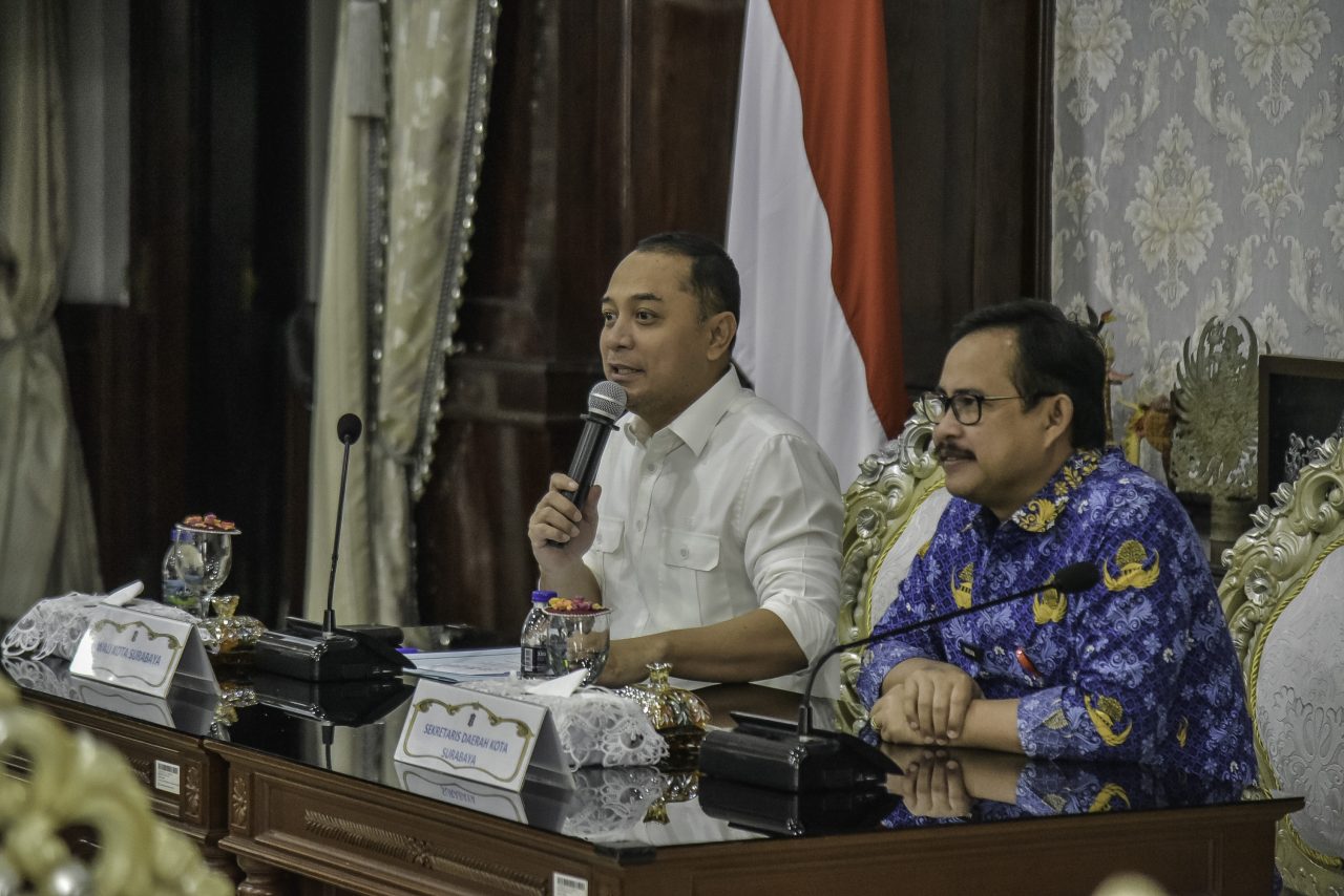 Pemerintah Kota (Pemkot) Surabaya terus berupaya menekan inflasi, salah satu langkah konkret yang tengah dilakukan adalah kerjasama dengan daerah penghasil komoditas seperti Blitar, khususnya untuk pasokan telur dan sayur. Hal ini disampaikan Wali Kota Surabaya Eri Cahyadi saat menerima kunjungan Wali Kota Blitar Syauqul Muhibbin di Ruang Kerja Walikota, Kamis (17/4/2025).