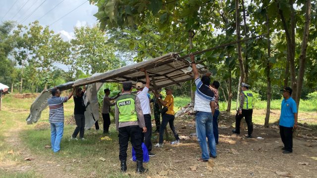 Dalam laporan dan foto yang diterima Redaksi Media Liputan Cyber.com., terlihat Kapolsek Ngoro Heru Purwandi., SH , didampingi Camat Ngoro Satriyo Wahyu Utomo, S.IP., M.Si., mengerahkan puluhan personil Tiga Pilar mendatangi lokasi dan melakukan pemusnahan perlengkapan judi sabung ayam di Desa Lolawang.