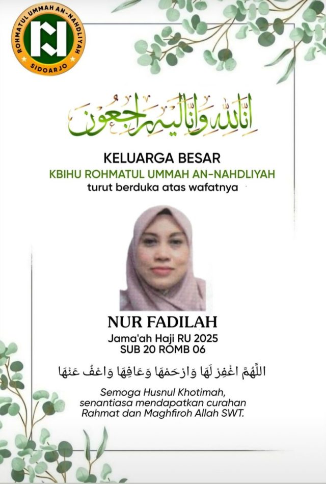 Sebuah kabar duka datang dari jemaah haji Embarkasi Surabaya, seorang jemaah haji bernama Nur Fadilah dinyatakan meninggal dunia di dalam pesawat maskapai Saudi Arabia Airlines nomor penerbangan SV 5323 ketika perjalanan menuju Bandara di Madinah pada Kamis (8/5/2025).