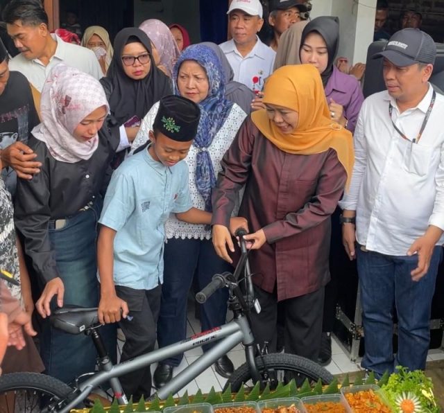 Pada kesempatan itu, Gubernur Khofifah juga membagikan satu unit sepeda kepada Nanda untuk dimanfaatkan saat berangkat ke sekolah. Gubernur juga menyampaikan permohonan doa dan restu, karena sebentar lagi ia akan berangkat melaksanakan ibadah haji memenuhi undangan Kerajaan Arab Saudi.