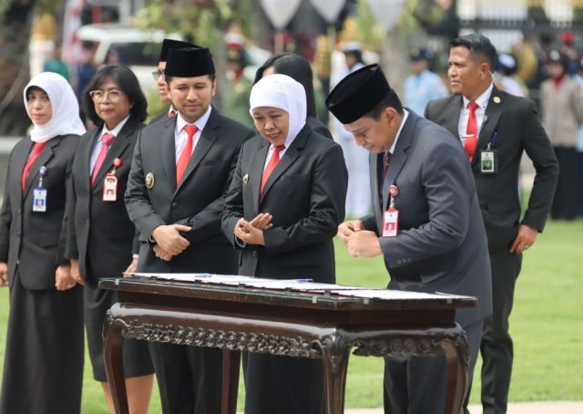 Penandatangan pakta integritas tersebut dilakukan oleh Gunernur Jawa Timur, Khofifah Indar Parawansa dengan Kepala Dinas Kesehatan (Kadinkes Jatim) Erwin Astha Tryono dan 14 direktur Rumah Sakit Umum Daerah (RSUD).
