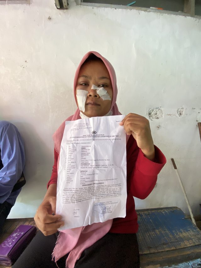 “Selanjutnya, wajah saya dipukul dengan piring plastik yang ada nasinya sampai piringnya pecah dan diteruskan memukul kembali dengan tangan kosong berkali-kali yang mengenai kepala sebelah kiri, dibawah mata sebelah kiri hingga berdarah, dibawah mata sebelah kanan, dagu sebelah kanan, dan dada sebelah kanan,” ungkapnya.