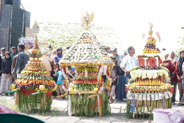 Disambut antusiasme masyarakat setempat, peserta arak-arakan yang terdiri dari 4 RT dari Dusun Graman mengenakan busana ala kerajaan. Dilengkapi berbagai gunungan hasil bumi dan diiringi treatrikal perang sempyoh. (Red)