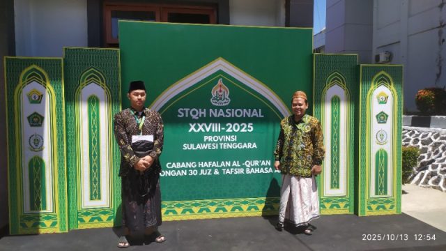 Peserta Kafilah Jawa Timur, Khoiruman Ardiansyah Al Ramadhani Putra Ananta, mengikuti cabang Tafsir Bahasa Arab Putra dalam ajang Seleksi Tilawatil Qur’an dan Hadis (STQH) Nasional XXVIII Tahun 2025. Penampilannya berlangsung di Aula Kantor Balai Penjaminan Mutu Pendidikan (BPMP) Provinsi Sulawesi Tenggara, Senin (13/10/2025).