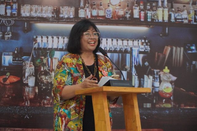 Direktur RS Jiwa Menur, Vitria Dewi saat menyampaikan sambutannya pada Gelar wicara hibrida bertajuk Mental Emergency: Pertolongan Pertama untuk Luka yang Tak Terlihat’ di Lt.2 Graha Menur, Surabaya, Rabu (15/10/2025). Foto : Ghufron / JNR