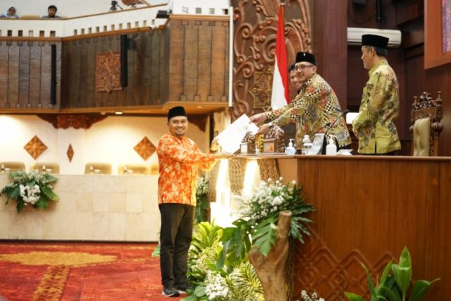 Dewan Perwakilan Rakyat Daerah (DPRD) Provinsi Jawa Timur menggelar Rapat Paripurna dengan agenda Penyampaian Penjelasan Pimpinan Pembahas oleh Komisi A (Bidang Pemerintahan) terhadap Rancangan Peraturan Daerah (Raperda) tentang Perubahan Kedua atas Peraturan Daerah Nomor 1 Tahun 2019 tentang Penyelenggaraan Ketenteraman, Ketertiban Umum, dan Pelindungan Masyarakat (Trantibum) di Ruang Rapat Paripurna DPRD Provinsi Jawa Timur, Kamis (6/11/2025).