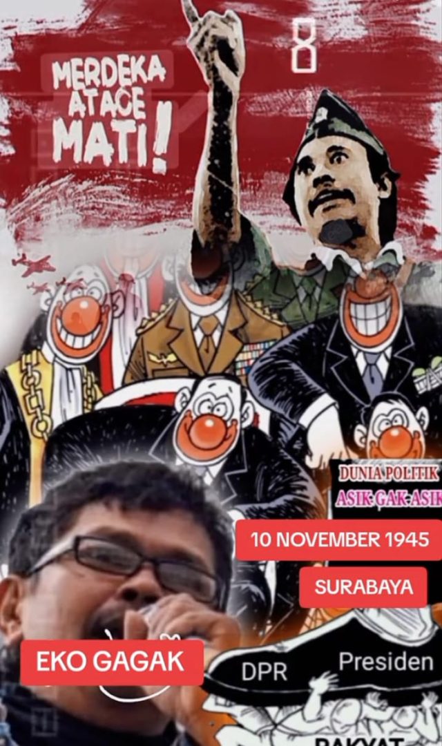 “Merdeka ataoe mati !” Pekikan sarat makna menggelora taruhan nyawa satu suara perlawanan terhadap penjajahan. Jiwa-jiwa pejuang tak kenal mati menelan habis penindasan ! “Merdeka ataoe mati !” Menggugah jiwa patriotisme menempa harapan yang menyala. “Allahu Akbar !” Gema takbir pekik Bung Tomo menggelegar menyeruak. “Merdeka ataoe mati !” Magis religius yang membakar semangat. “Merdeka atau mati !” Dipertahankan sampai titik darah penghabisan, berbekal tekad juga semangat maka meledak 10 November 1945.