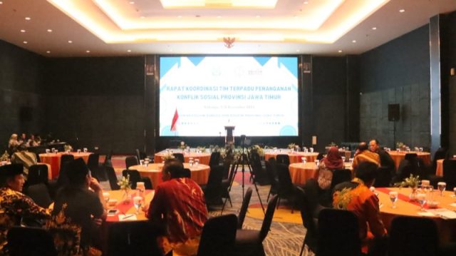 Untuk meningkatkan koordinasi dan kolaborasi antara lembaga/instansi, Organisasi Perangkat Daerah (OPD), serta mendeteksi adanya potensi – potensi sosial yang dapat menganggu stabilitas keamanan di Jawa Timur, Badan Kesatuan Bangsa dan Politik (Bakesbangpol) Provinsi Jawa Timur menggelar Rakor Tim Terpadu Penanganan Konflik Sosial, mulai 11 – 12 Desember 2025 di Hotel Luminor Sidoarjo, yang dibuka oleh Kepala Bakesbangpol Jatim, Eddy Supriyanto.