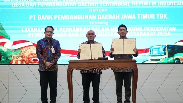 ”Kami mengucapkan terimakasih atas kepercayaan dari Kemendes PDT RI kepada Bank Jatim untuk ikut mengembangkan perekonomian desa di wilayah Jawa Timur. Melalui perjanjian ini, kedua belah pihak telah sepakat untuk mengoptimalkan pemanfaatan layanan perbankan dalam mendukung pembangunan desa secara terintegrasi. Fokus utama kami di sini yaitu membangun ekosistem ekonomi desa yang tangguh dan mandiri,” katanya dalam keterangan tertulisnya, Minggu (15/2/2026).