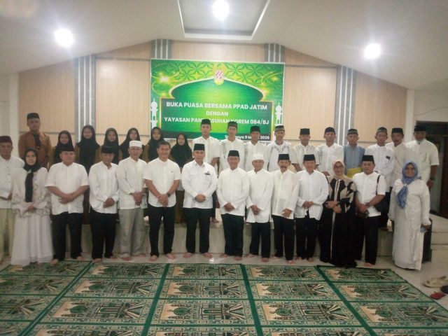 Dalam rangka mempererat tali silaturahmi dan berbagi berkah di bulan suci Ramadhan, keluarga besar Persatuan Purnawirawan Angkatan Darat Provinsi Jawa Timur (PPAD-JATIM) menggelar acara Buka Puasa Bersama dengan Yayasan Panti Asuhan Korem 084/BJ di aula kantor PPAD Prov Jatim jalan Brawijaya Surabaya, senin sore (9/3/2026).