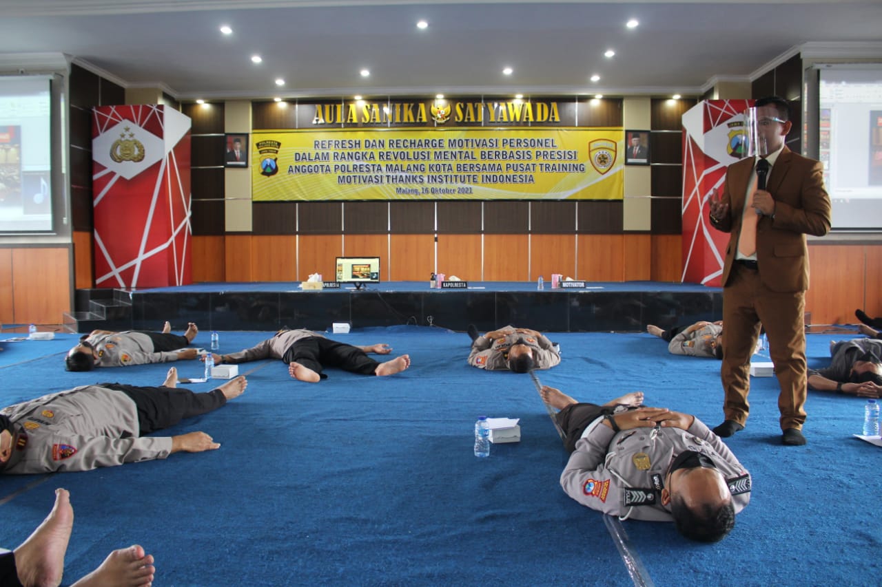 Bersama tim motivator lainnya, Ketut Abid Halimi membekali anggota Polresta Malang Kota dengan senam otak, senam hati, dan hypnoteraphy mandiri.